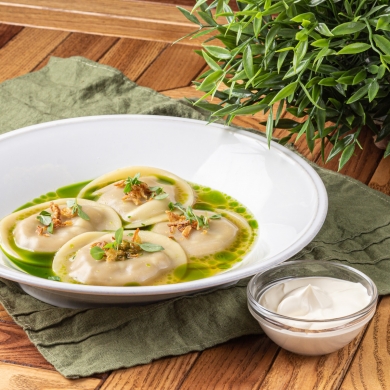 Равиоли с креветками и соусом песто