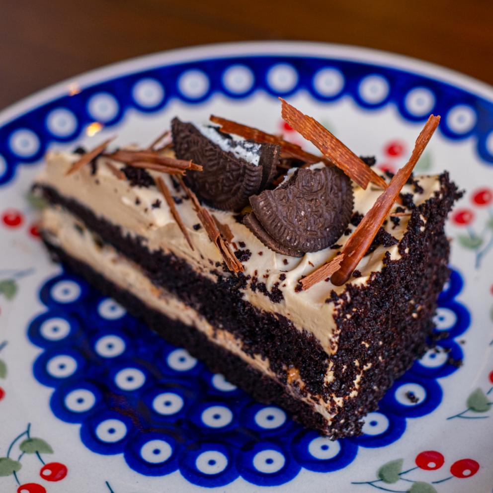 Нежный бисквит на основе сыра Маскарпоне и кофейного ликера с шоколадной стружкой, печеньем Орео и соленой карамелью