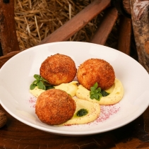 Крокеты из куриной грудки с картофельным пюре и зелёным маслом