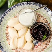 Вареники из домашнего творога и муки, с вишневым вареньем и сметаной