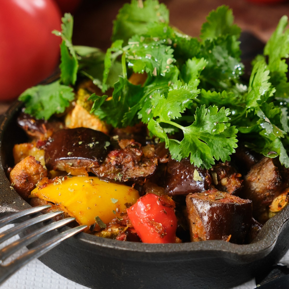 Запеченные в печи баклажаны, перец, цукини с чесноком