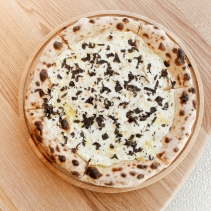 Пицца из дровяной печи с сыром Рикотта и Моцарелла с добавлением слайсов черного трюфеля