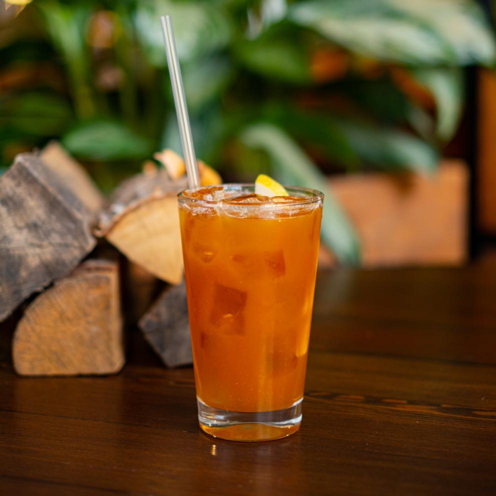 Пюре из сливы, сироп груша, содовая, свежие груши, лёд