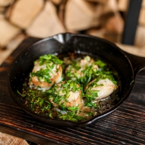 Гребешок обжаренный, масло сливочное, масло оливковое, масло чесночное (масло подсолнечное, чеснок), петрушка, соль морская, перец черный