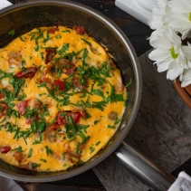 Нежный омлет из трех яиц с беконом, томатами и коул слоу