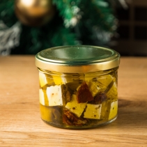 Сыр Чанах, семена тыквы, оливки, вяленые томаты, масло оливковое