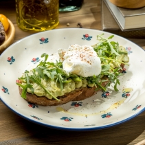 Обжаренный тост с кремом из авокадо, руколой и яйцом пашот