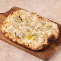 Пицца с грушей, сыром с голубой плесенью, сливочным соусом и мёдом