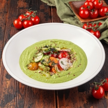 Салат из фермерских овощей с зеленым хумусом и ореховой смесью