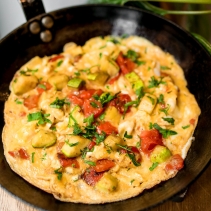 Нежный омлет из трех яиц с кабачками, помидорами, болгарским перцем и ароматной зеленью