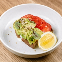 Хрустящий тост серого хлеба с сыром Страчателла, авокадо и сочными томатами