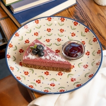Нежное суфле из вяленных бананов, с добавлением пюре кокоса, кокосовой стружки, какао, фундука, голубики и сладкой вишни