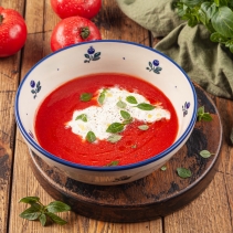 Томатный суп-пюре со Страчателлой и свежим базиликом