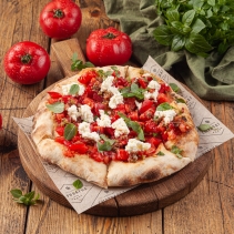 Фокачча из дровяной печи с узбекскими томатами, цитрусовой Рикоттой и соусом сальса с анчоусами