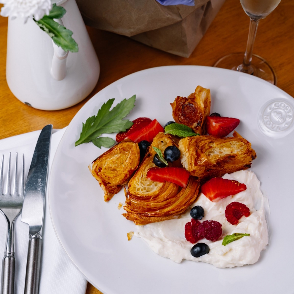 Классический круассан с кремом из домашнего сливочного сыра и сезонных ягод