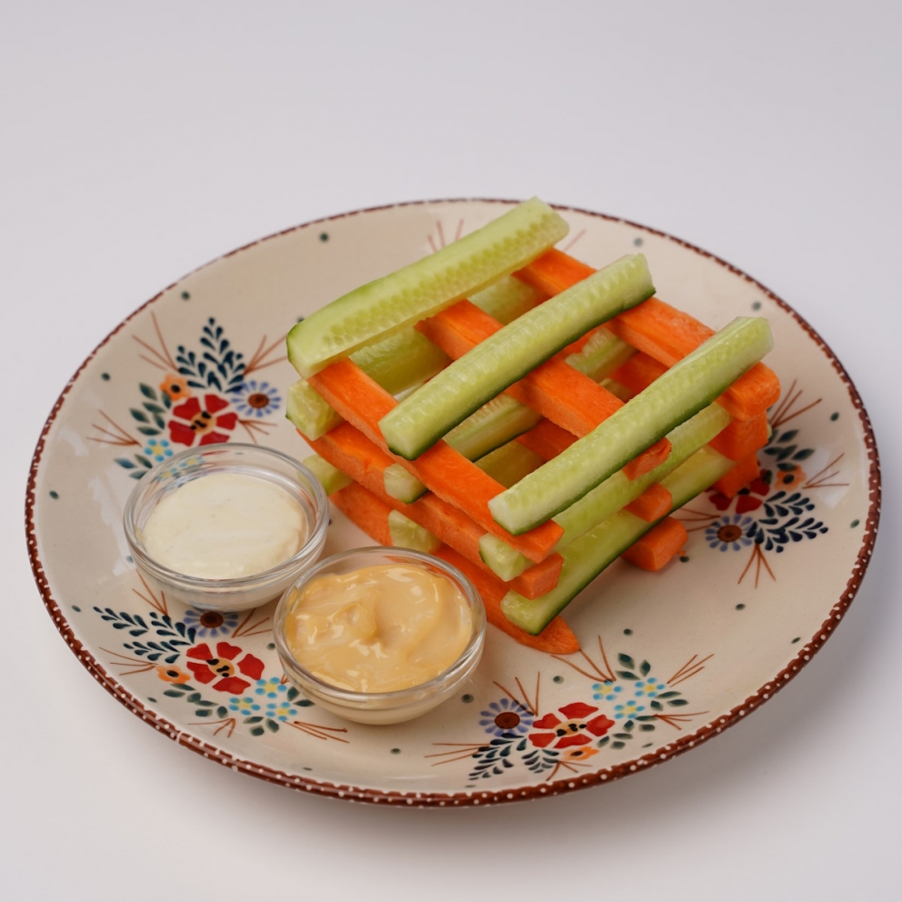 Огурец, морковь и два вида соуса