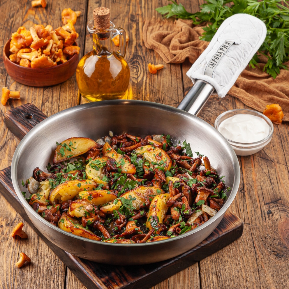 Обжаренные лисички с картофелем