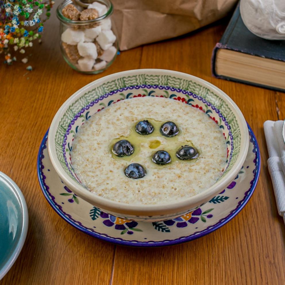 Каша овсяная на кокосовом молоке с добавлением сливочного масла и свежей голубики
