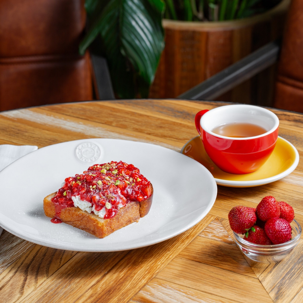 Бриошь с клубничным гаспачо и сыром Рикотта