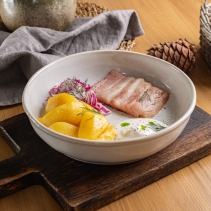 Слабосоленый омуль с картофелем и фермерской сметаной
