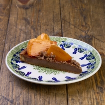 Легкий песочный корж из миндальной муки с шоколадной прослойкой и сладкой хурмой