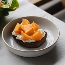 Мягкая обжаренная бриошь со сливочной Страчателлой и кусочками сладкой хурмы