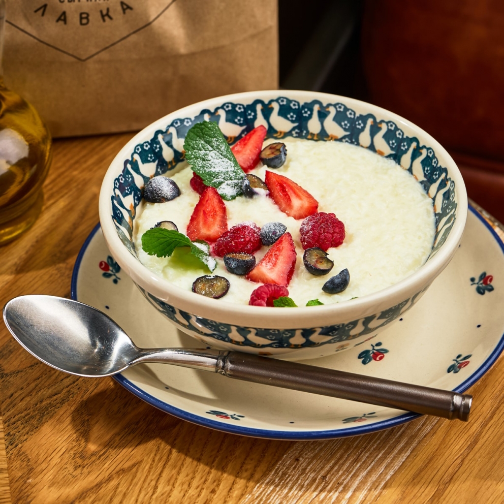 Нежная рисовая каша на классическом молоке с добавлением голубики, клубники и малины