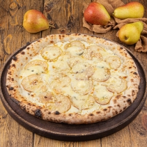 Пицца из дровяной печи с грушей, домашней Моцареллой, Горгонзолой и кедровыми орехами