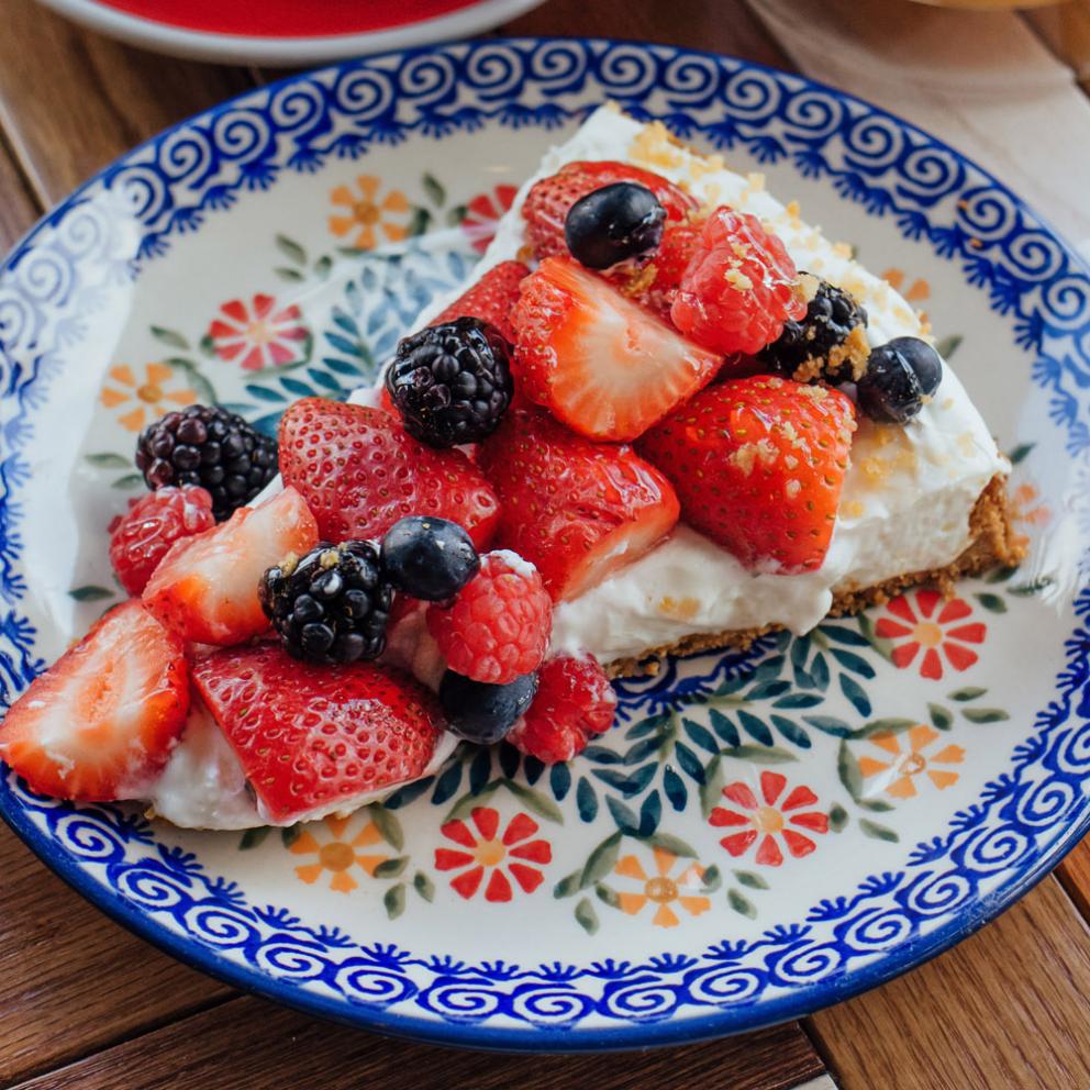 Ягодный пирог из песочного теста, сыра Креметте и ассорти из свежих ягод