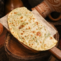 Лепешка из тонкого сдобного теста с начинкой из фарша телятины с луком