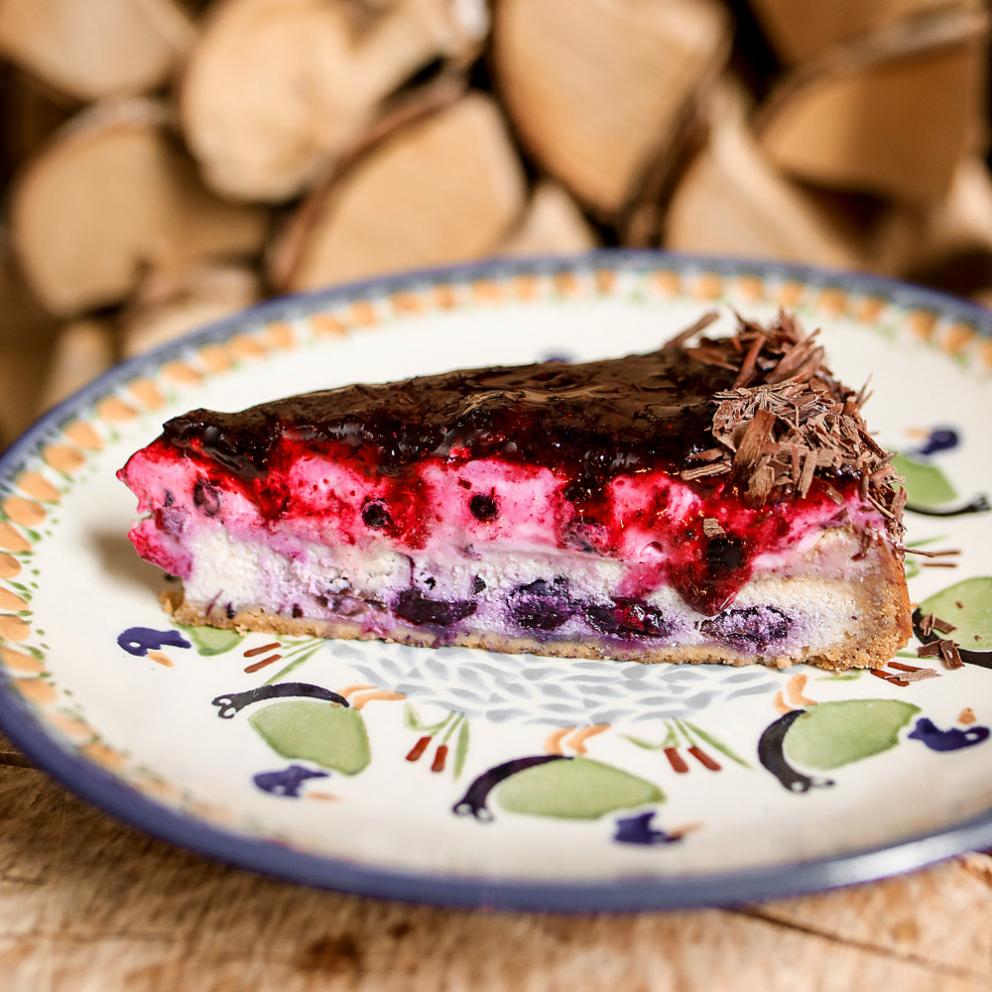 Песочный корж, нежный крем из сыра Креметте, черничный джем