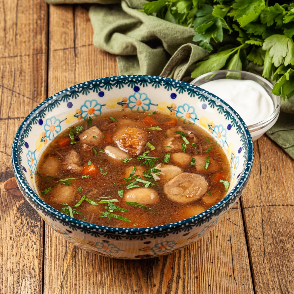 Насыщенный постный суп с белыми грибами и соевой сметаной