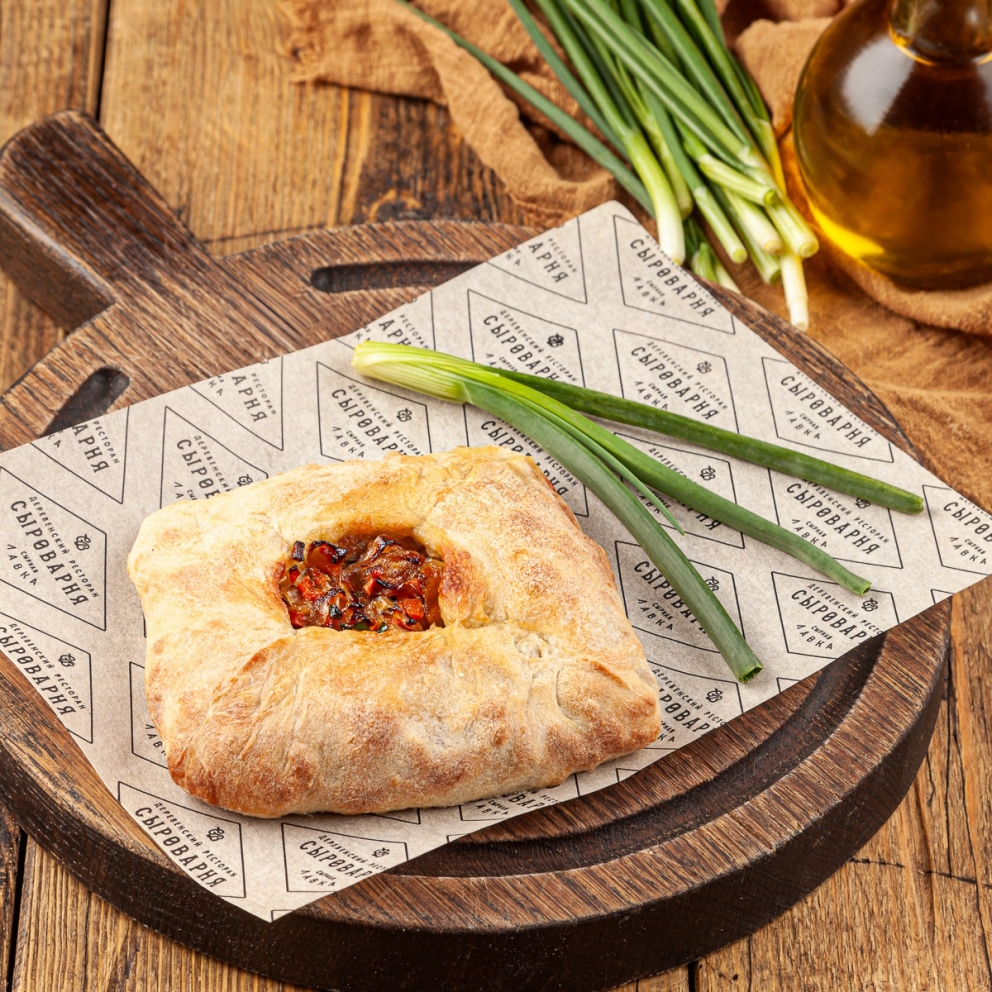 Домашний пирог из дрожжевого теста с начинкой из обжаренной с морковью и репчатым луком капустой