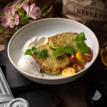 Обжаренные оладьи из брокколи с соусом крем чиз с яйцом пашот