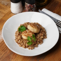 Котлеты из нежного филе кролика, обжаренные на сливочном масле с гарниром из гречки и белых грибов