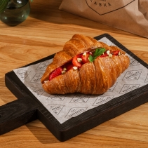 Классический круассан с кремом из домашней Рикотты, свежей клубникой и фисташками