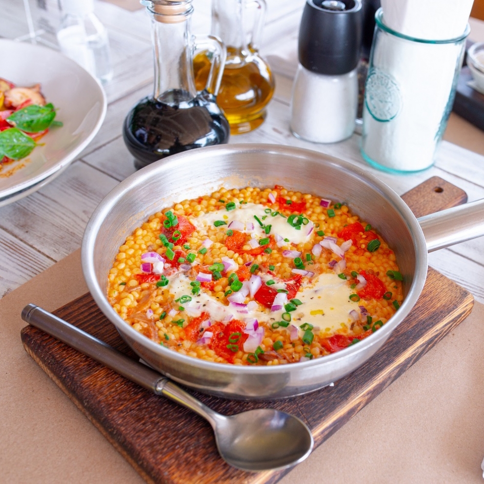 Томленая утка с птитимом, Страчателлой и Пармезаном