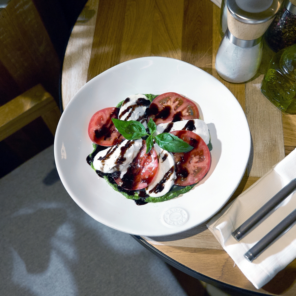Салат с соусом песто, узбекскими томатами и домашней Моцареллой