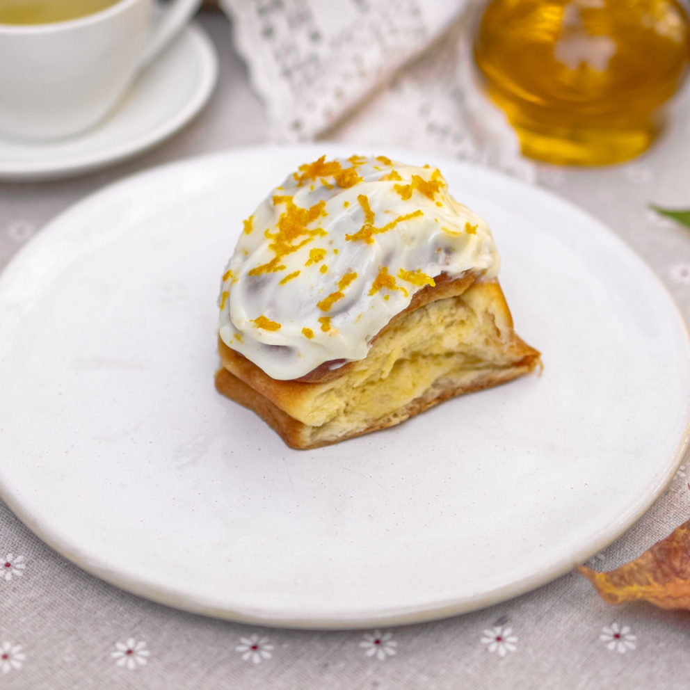 Булочка из сдобного теста с цитрусовым курдом и апельсиновым сырным кремом