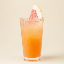 Лимонад (фреш грейпфрут, основа для напитков грейпфрут-бузина, пюре каламанси, раствор кислот (лимонная кислота, яблочная кислота, соль, винная кислота, вода питьевая)), вода питьевая газированная, лед, грейпфрут