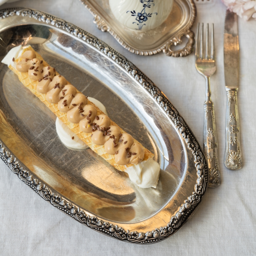 Вафельная трубочка с взбитой Рикоттой и белым шоколадом
