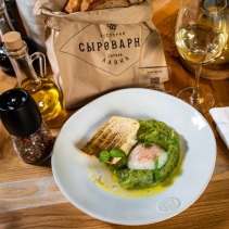 Судак в винном соусе с яйцом пашот и картофельным пюре на молоке и сливочном масле