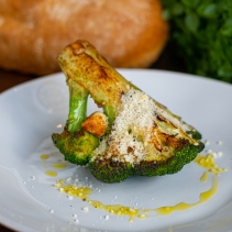 Капуста брокколи бланшрованная, обжаренная, масло подсолнечное, масло сливочное, сыр пармезан, масло оливковое, соль морская, перец черный