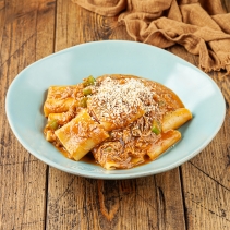 Паста с нежной уткой, томленой в томатном соусе, с сельдереем и пряным Пармезаном