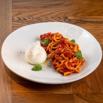Домашняя паста в томатном соусе с мини-Бурратой и базиликом