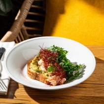 Гуакамоле (сахар песок, соль морокая, авокадо, помидоры узбекские), креветки тигровые, масло подсолнечное, хлеб бриошь, салат рукола, шпинат мини, соус чили сладкий, нити чили
