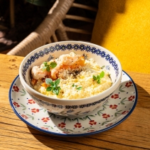 Кукурузная каша с тигровыми креветками, запечённой тыквой и Пармезаном