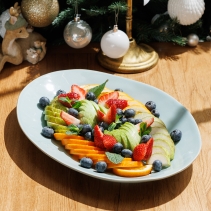 Ассорти свежих фруктов с клубникой, голубикой, яблоком, апельсином и грушей