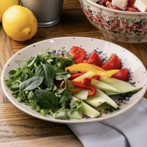 Ассорти из свежих огурцов, узбекских томатов, болгарского перца и миксом зелени