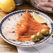 Нарезка из слабосоленого лосося и муксуна